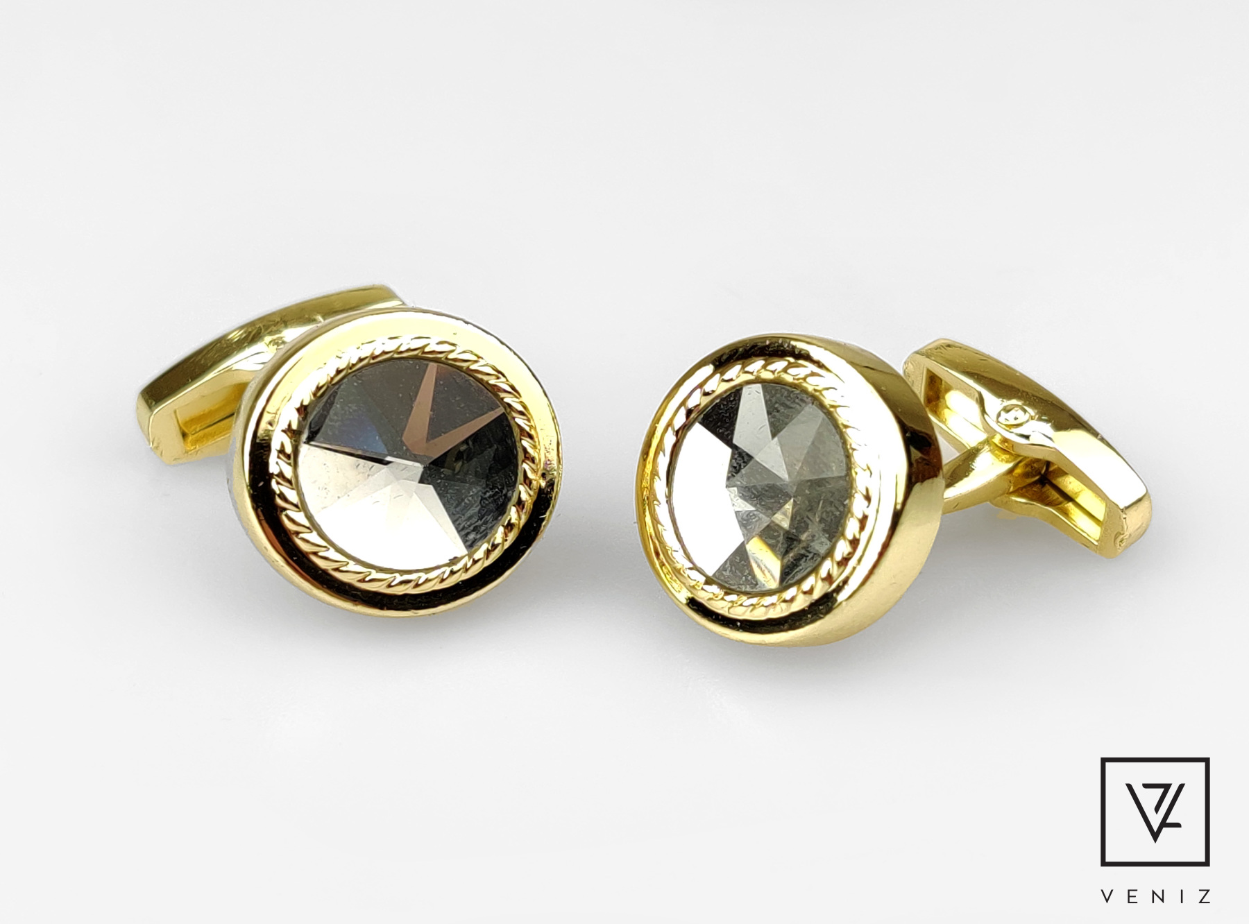 Kanttiset kalvosinnapit kulmakoristeella