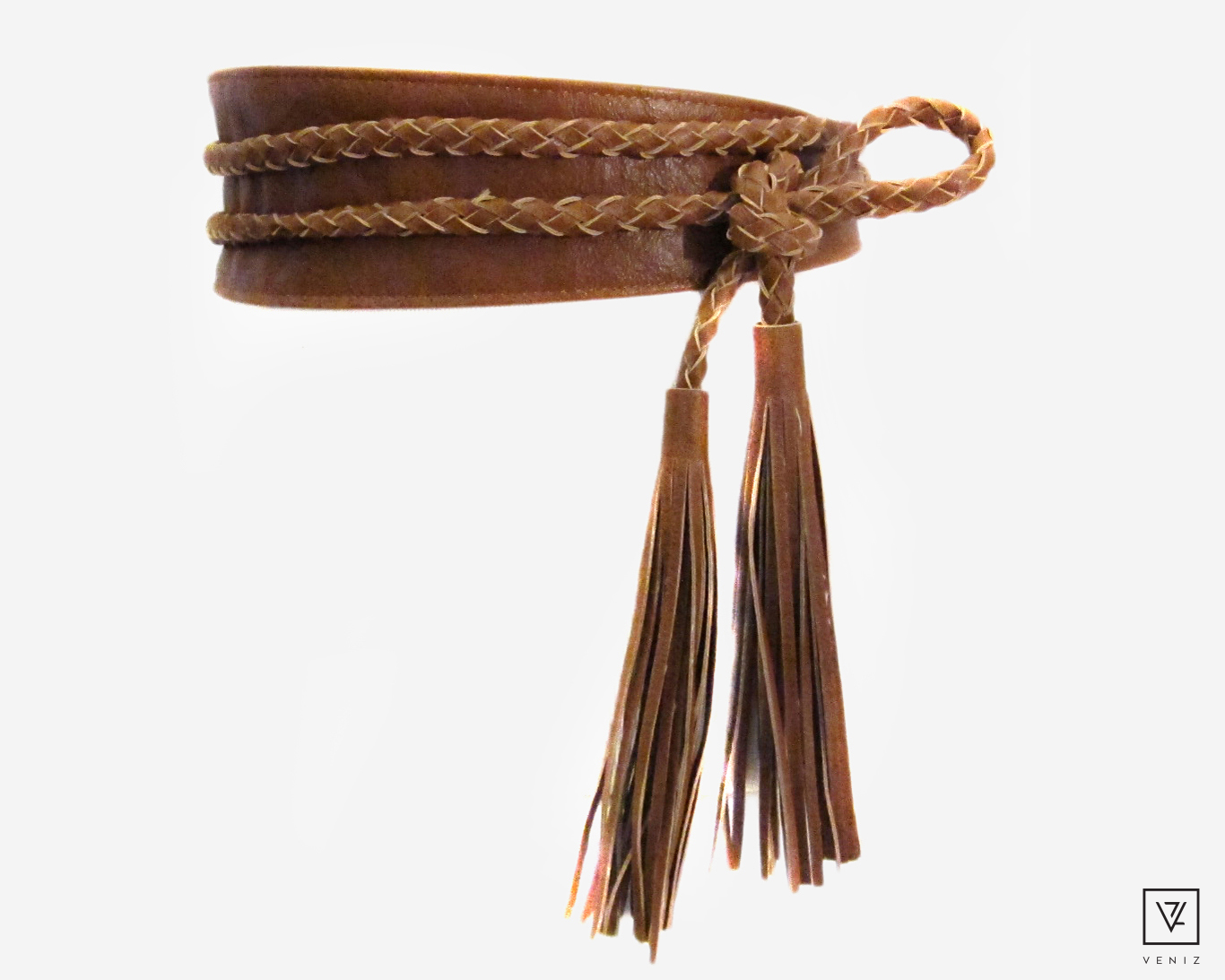 Veniz naisten patellavyö on helposti sidottavissa juuri sopivan kokoiseksi. Materiaali on miellyttävän pehmeää. Nauhat ovat kaunista pyöreää punosta ja niitä koristaa tyylikkäät tupsut. Vyön leveys on 70 mm.