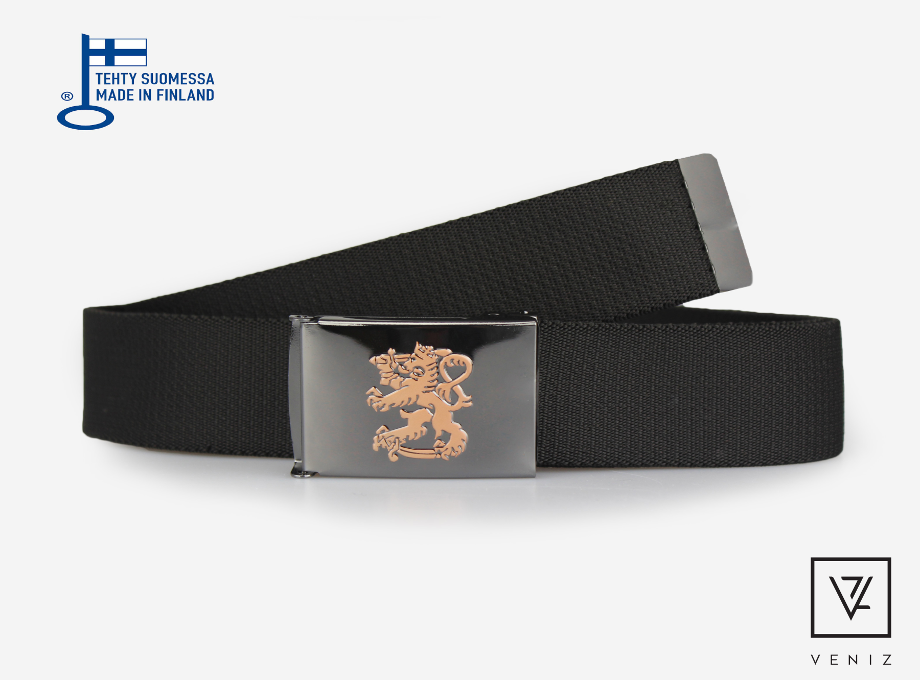 Veniz joustava canvasvyö on kotimaista laatua ja sille on myönnetty Avainlippu-merkki. Vyö on erittäin laadukasta joustavaa materiaalia, mikä lisää käyttömukavuutta. Vyö säilyttää joustonsa hyvin. Vyö on lyhennettävä ja nikkelivapaa solki on lukittavissa mihin kohtaan tahansa, joten vyön saa aina säädettyä juuri sopivaksi. Vyö on 40 mm leveä.