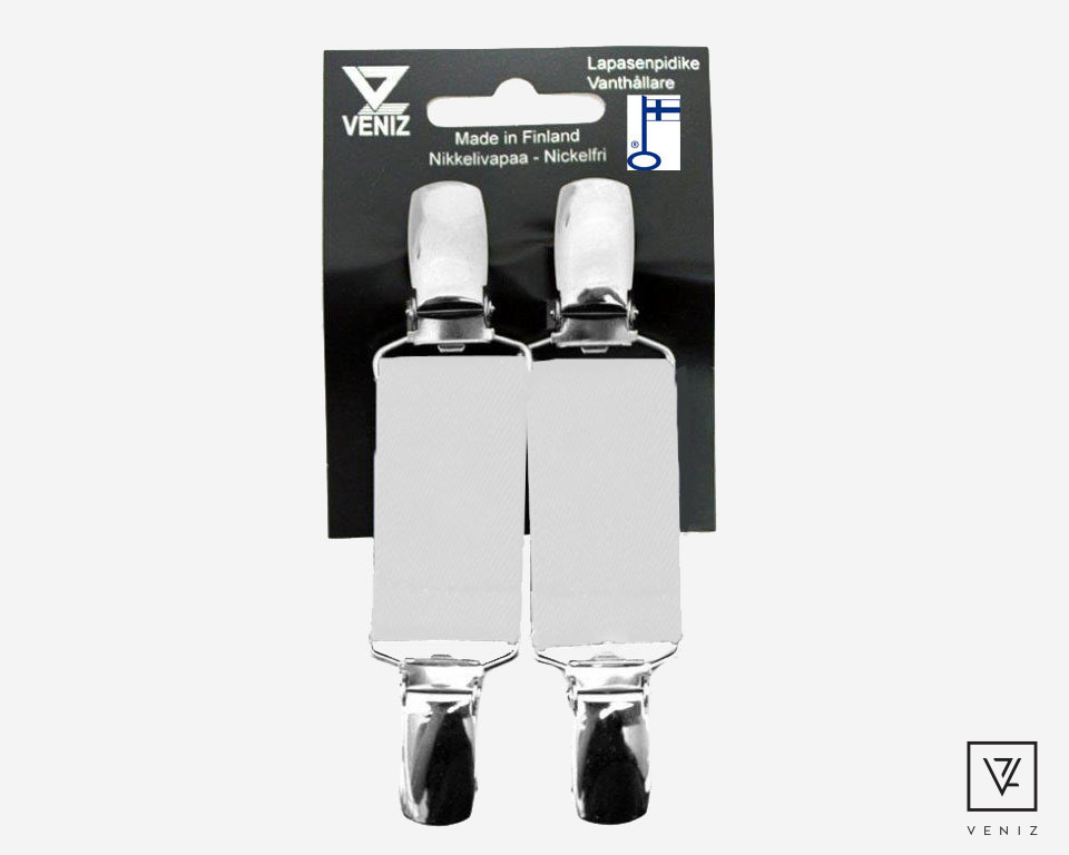 Veniz lapasenpidikkeet ovat kotimaista käsityötä ja niille on myönnetty Avainlippu-merkki. Klipsit ovat nikkelivapaat ja pysyvät lujasti kiinni rikkomatta kangasta, johon klipsi kiinnitetään. Lapasenpidikkeitä voi käyttää monipuolisesti myös muihin tarkoituksiin - vain mielikuvitus on rajana.