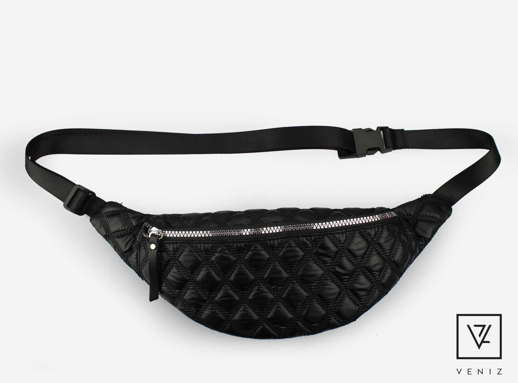 Säädettävän vyönauhan ansiosta laukkua voi käyttää crossbody mallina.