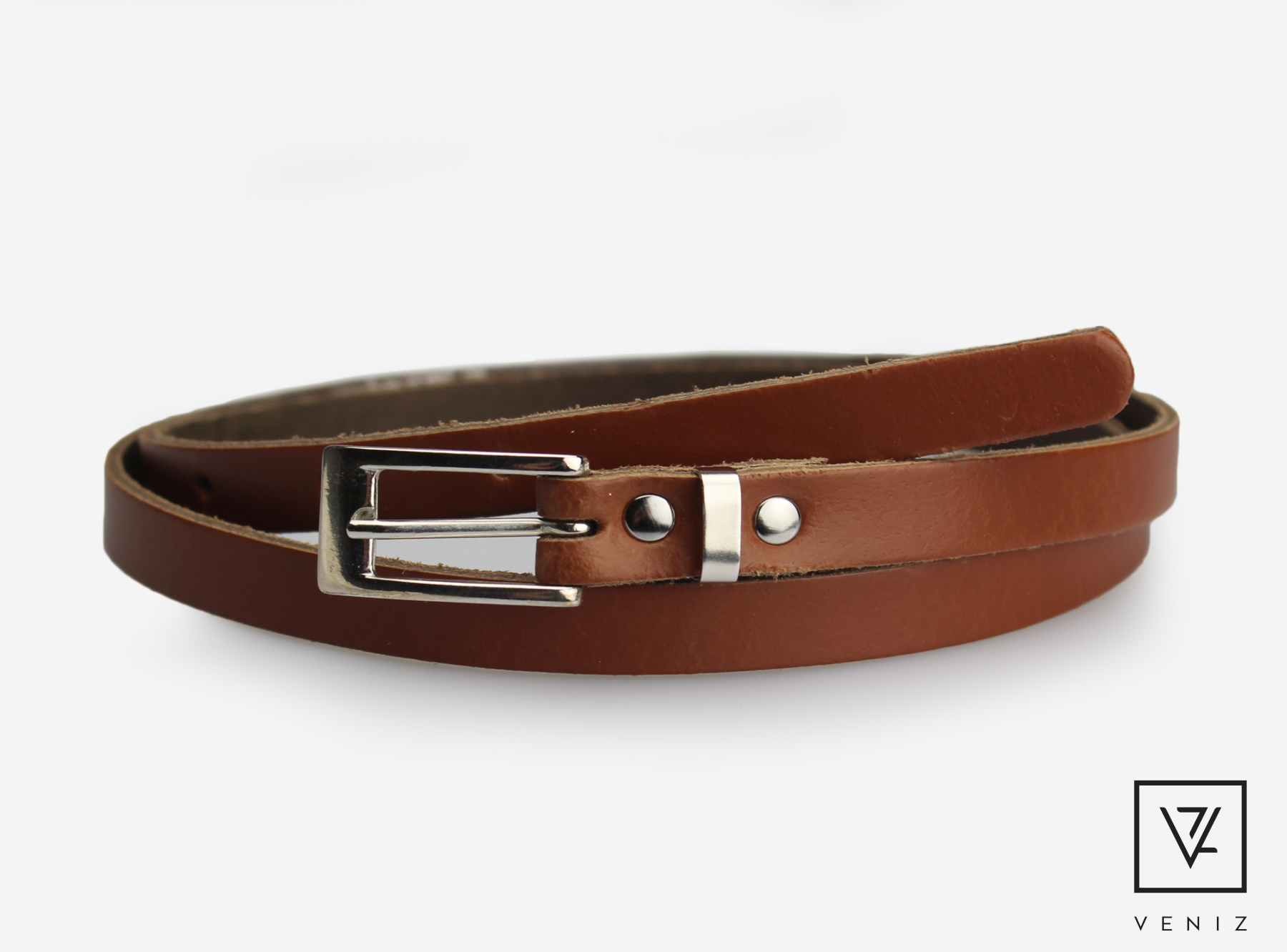 VENIZ 15mm Naisten Ruskea nahkavyö Metallijuoksijalla